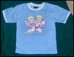 En helt ny t-shirt till Alfred, det står Änglar finns visst på ryggen, bara så söööt tröja, den passade Ian först ett tag och sedan fick Alfred den. 25 kr (47 kr)