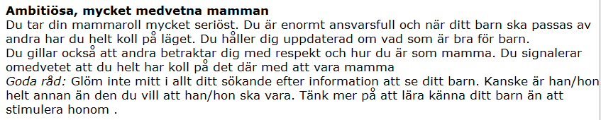 Men rent krasst, ett test kan inte tala om vilken typ av mamma jag är…. personligen anser jag inte att ett föräldraskap nödvändigtvis måste vara biologiskt. Det finns så många biologiska föräldrar som inte förtjänar sin etikett som ”förälder”. Förälder blir den människa som är bäst för barnet, oavsett om det finns DNA som överensstämmer eller inte. Den människa som kan älska ett barn ovillkorligt är den som är bäst lämpad för föräldrarollen.