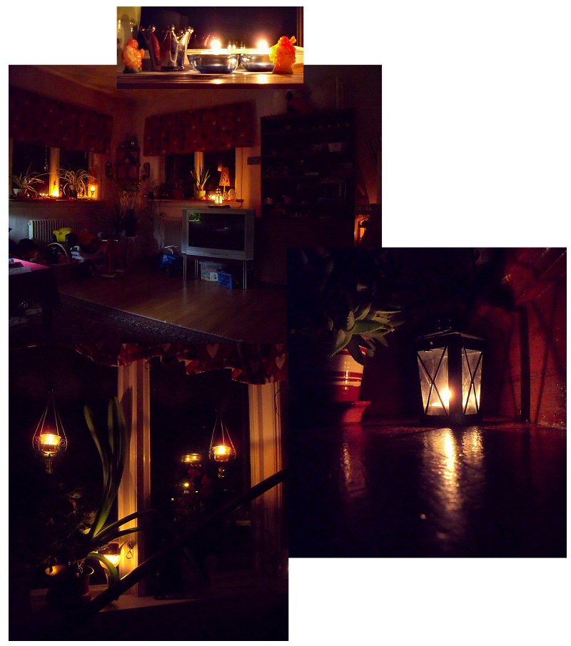 Maken, som skulle iväg och jobba, lämnade av oss hemma och körde iväg. Jag rustade barnen för sängen och kom efter nattning på att det var ju earth hour på kvällen…. jag kompromissade det hela genom att ha tv:n på, och fiskarna fick behålla ljuset på också faktiskt…. annars släkte jag ner allt som drog ström, trodde jag… en klockradio var fortfarande på förutom kyl/frys och värmepanna…. 14 värmeljus och säkert 7 rökelse gick av under timmen och jag tände faktiskt inte på resten av kvällen….