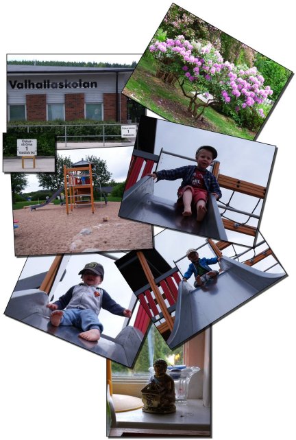 Efter vi röstade så åkte vi till den alldeles nyrenoverade lekplatsen. Jag begriper mig inte på föräldrar som släpper sina barn vind för våg…. Jag fick snacka ner en 6-årig liten tjej från högst upp på taket (där man inte ska klättra), hade hon trillat ner så hade hon slagit sig fördärvad… Men hon blev spak av det lilla scenario jag målade upp med ambulans, blod, benbrott och en eventuell för tidig död…. Jag drar mig inte för att skrämma barn med sanningen *så det så*. Det var faktiskt Totte som uppmärksammade mig på det eftersom jag satt med näsan i dagens Aftonbladet… *rodnar*