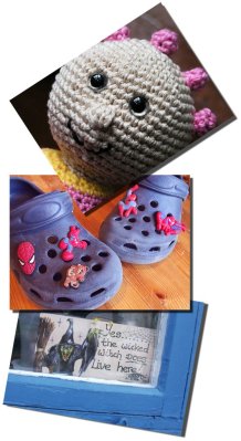 Idag blev Totte lycklig när hans spiderman-jibbitz kom till hans foppatofflor, och jag blev lycklig när min skylt kom =) Ian fick sin Tombliboo som jag virkat på i helgen och Alfred….. ja han fick inget men han blev så lycklig när han vågade åka STORA rutchkanan vid Max!! Det var ett hissnande skräckfyllt ansikte som kom emot mig första gången, men efter att ha tagit emot honom 2-3 ggr så klarade han det utmärkt själv!