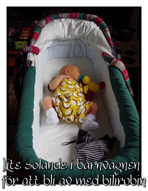 Idag -onsdag- var det då dags för att ta sig tillbaka till BB-mottagningen för PKU-testet. Hannes vägde 3685 gr idag och har alltså bara 220 gr kvar till födselvikt, vilket trots hans bilirubin och första dygns toksovande, är en mycket bra vikt då de får diffa 10% i vikt (har jag för mig) vilket gör 390 gram för Prutten.