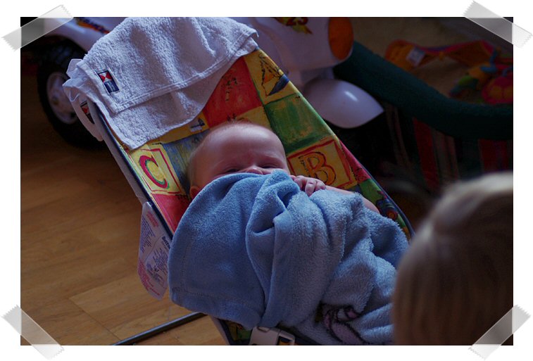 Hannes var länge en liten kille som villa ha mycket kroppskontakt, först när han var 6 veckor accepterade han att jag satte honom i babysittern och där har han trivts jättebra! Ett tag var det enda stället som han trivdes att sova på under dagarna.