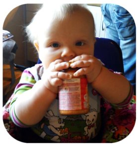 Idag åt han en hel burk Pasta Penne med skinksås till middag! Han har aldrig ätit mer än en halv innan. Fast det ska ju vara HIPP…. Nestlé eller Semper måste jag mixa för annars klöks han av bitarna och så kräks han upp allt han har lyckats få i sig.