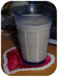 Varmt vatten, dra te, i med kokosfett och 1 ägg – mixa…. lite sötningsmedel också kanske…. *mixa mixa*
