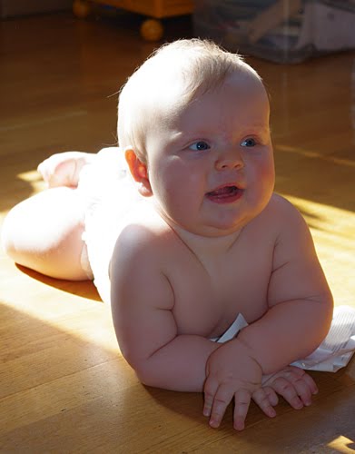 Den 15 april satte han sig själv upp på golvet för första gången, nu 12 dagar senare så går det undan och han sätter sig upp även när han inte har vaknat ordentligt, vilket kan ske mitt i natten faktiskt *suck* däremot har han börjat sova längre på morgnarna igen *tackochlov*