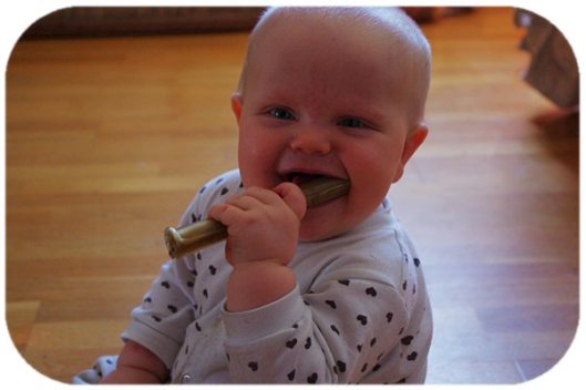 Över lag fungerar det bra med träningen till rumsren och att man ska vänta på att få lov och ta sin mat. Det enda som är lite ”jag-hör-vad-du-säger-men-det-skiter-jag-högaktningsfullt-i” är att hon inte får klättra upp på Hannes, vräka omkull honom på golvet och nafsa honom i öronen…. Snacka om världens mest gigantiska pipleksak!! Eller vrålleksak kanske…. Kan ju informera om att Hannes inte tycker det är lika kul som Selma…