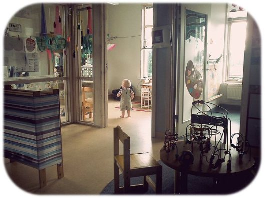 I vanlig ordning är våra barn oerhört svåra att skola in… Jag hade lika gärna kunnat åka hem, han struntade fullständigt i mig och gick och kollade runt, lekte lite och tittade på de andra barnen. Småbarnsavdelningen har fullständigt kaos med hela 2 (!) ordinarie barn den här veckan… skönt…