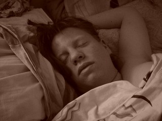 Sedan var både Ian och Alfred inne och frågade saker och Hannes sov vidare. När Alfred kom vid 9.30 så vaknade Hannes till och det lät lite då och då från hans säng…