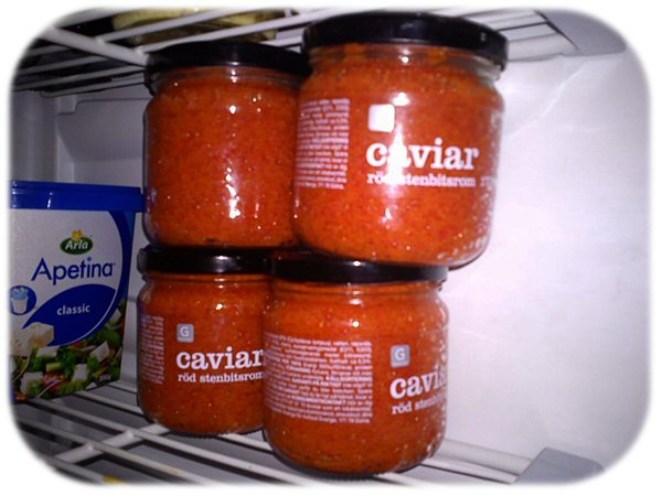 Jag äter ägg, majonnäs, stenbitsrom och räkor till frukost nästan varje morgon och sedan är det 3 till i familjen som gillar stenbitsrom, fel, förlåt mig, jag glömde Hannes som älskar det blandat med majonnäs.
