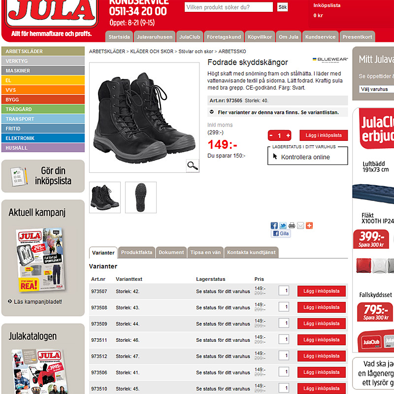 Jag sitter för fullt och letar skyddskläder inför mig inköpsrunda imorgon… Jag ska in på Jula och prova byxor och ev en vinterjacka och kanske eluppvärmda vantar *fan värt* men skyddsskor! Det kan de ta mig sjutton inte prestera i min storlek.