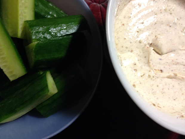 Uppladding inför melodifestivalens final… Gurkstavar och vitlök/chilli&choko-dipp