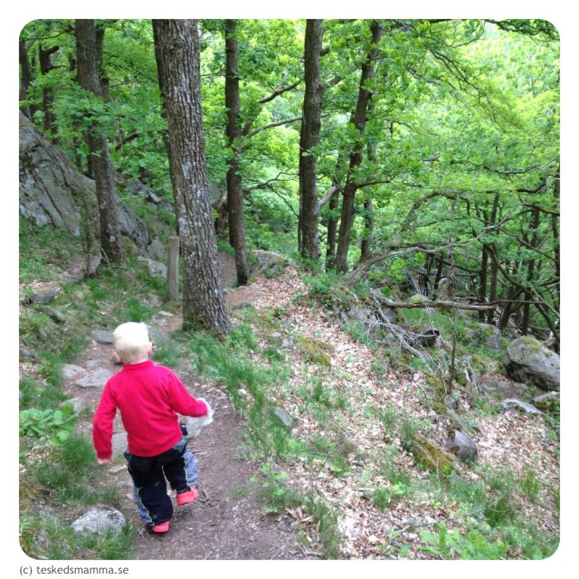 Nå, jag jobbade en stund och så drog jag och Alfred iväg för att hämta den kristall jag har haft nedgrävd på Virsehatt i ett par veckor för att renas bl a. Som förra gången var det en flåsig vandring uppåt, för min del, Alfred skuttade likt en bergsget upp för stigen. Ett tag var jag lite orolig för att klumpedunsen skulle snubbla i vanlig ordning och trilla ner för bergssidan, men det gick bra!