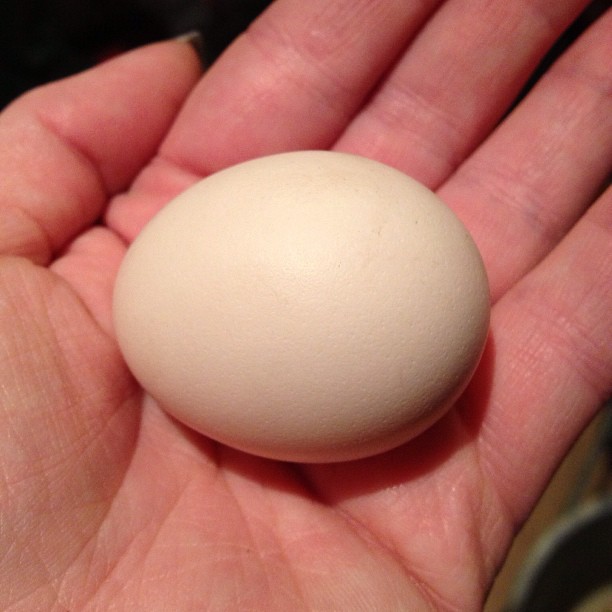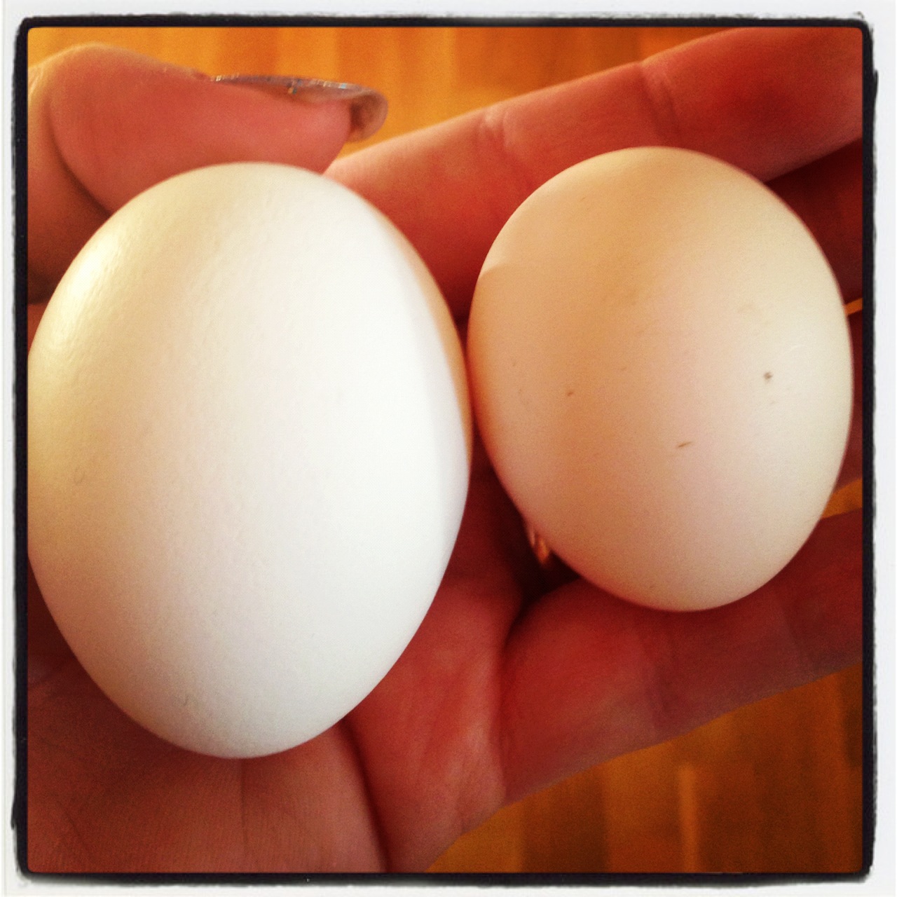 Här är en bild på ett vanligt hönsägg och så Ettans lilla ägg jämte.