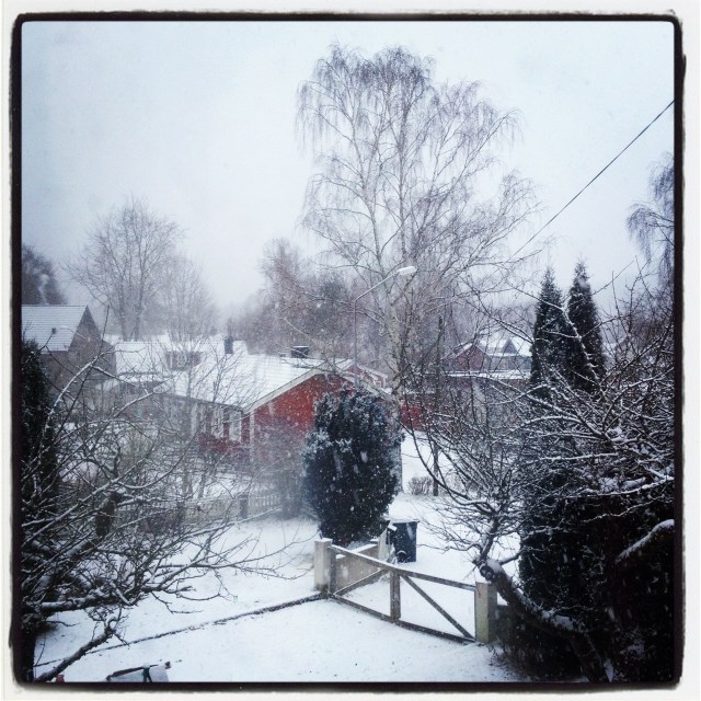 Imorse hade det börjat snöa när jag körde ungarna till bussen… Sedan har det liksom inte slutat 🙂