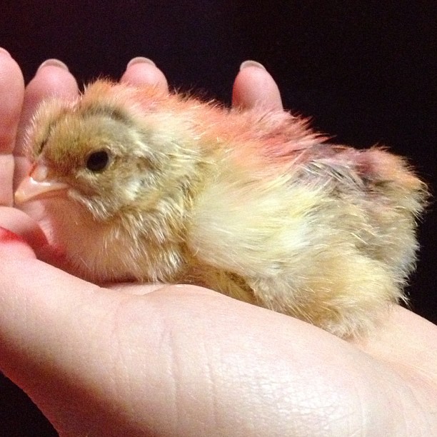 Den första kläcktes imorse vid 8:45. När jag var ute och släppte ut Ivan och gav kaninerna mat så kollade jag Ettans ägg och fick ut ett tomt äggskal! Efter lite grävande under en morrande höna så hittade jag den lilla kycklingen! Det är en duktig Orusthöna vi har, nu ska hon bara lägga egna ägg att kläcka fram också.