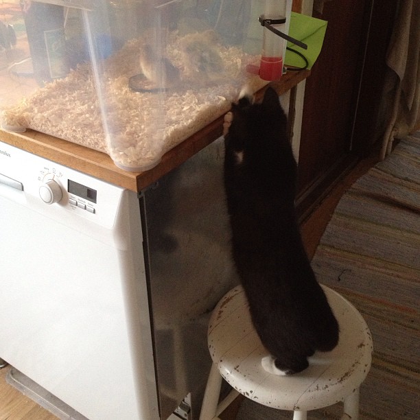 Hon är en bra mamma och tuppen Ivan sitter förvånat på sin pinne och undrar vem den rabiata kärringen på golvet är! Så fort han närmar sig går hon på honom… brukar vara tvärt om!