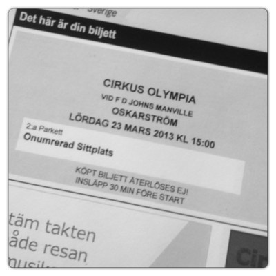 Cirkusbiljetterna ligger just nu på köksbordet! Åh vad jag älskar att köpa biljetterna, betala online och skriva ut dem här hemma!! Så jädra smidigt att slippa köra in till stan bara för att hämta dem i butiken. Eller… man kan hämta hos ATG också va?! Nåja, who cares? 😉