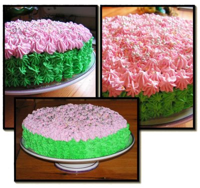 Till tårtan så gjorde jag punchpralinfluff *my god så gott* och köpte hallonmousse och det var en kalasbra kombination. Ovanpå var det bara enkelt med grädde och så färgade jag lite grädde blått och spritsade… latversionen…