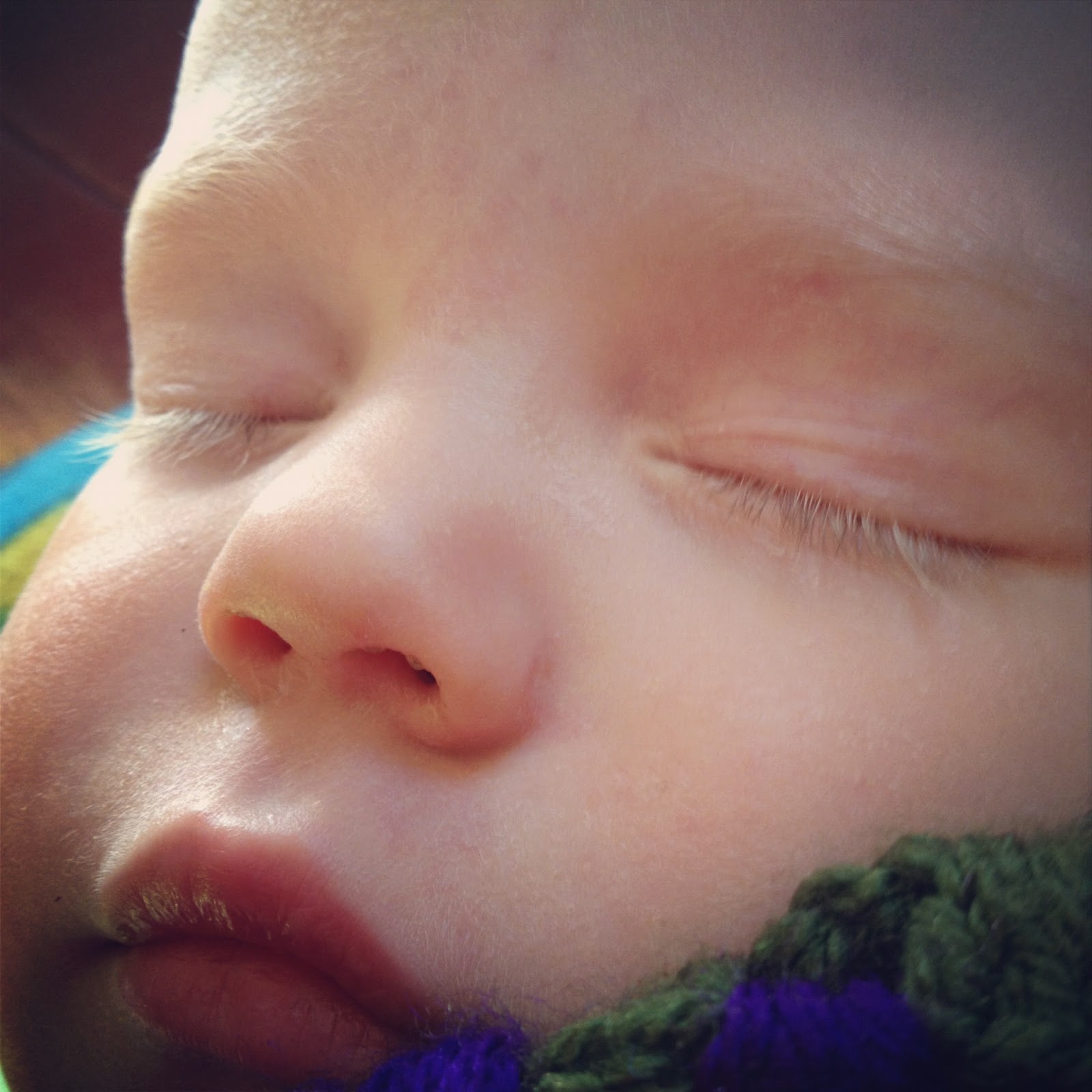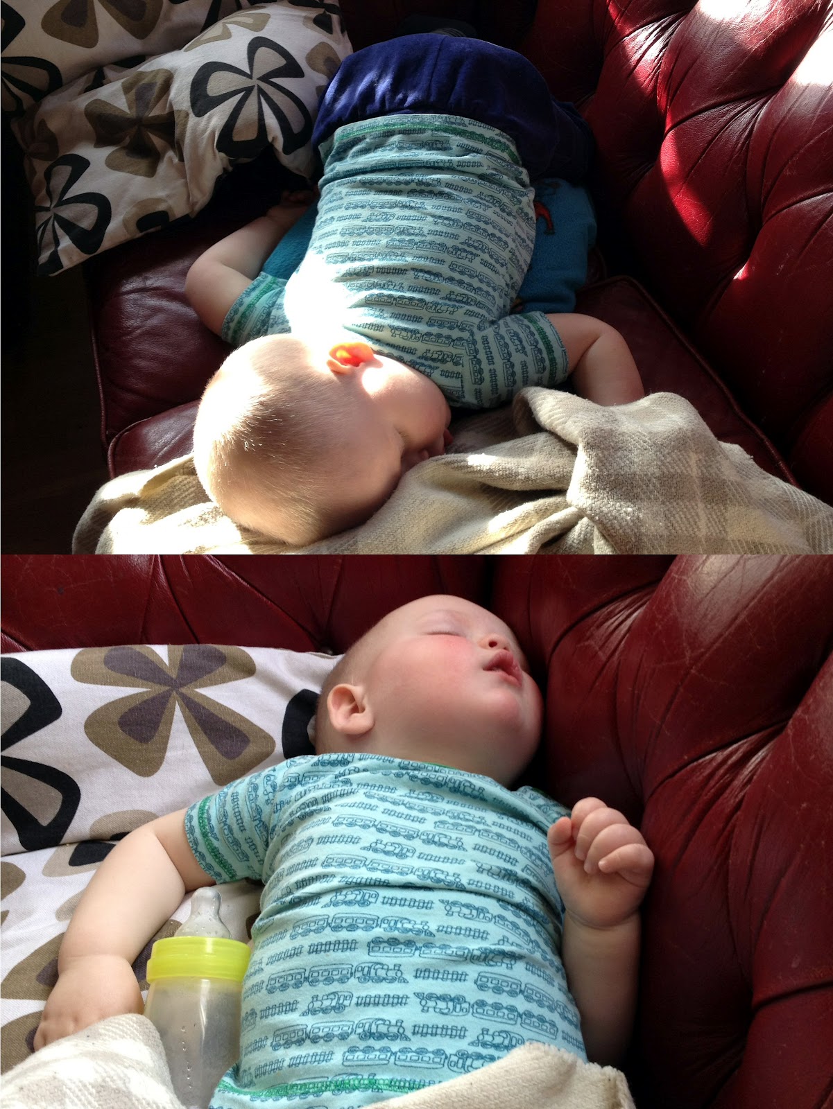 Han sov oroligt från 5.15 så jag hämtade honom och lade honom i vår säng där han sov vidare om än oroligt.