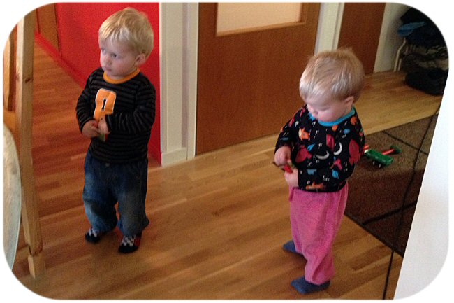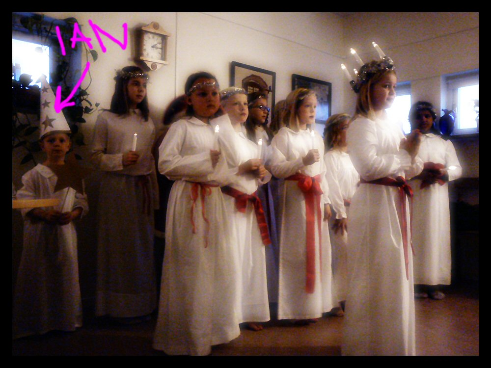 Den tänds alldeles för sent för att småttingar ska orka vara vakna och även i är var ett av barnen för litet för att orka hela kvällen. Sedan kanske vi inte ska gå ner när det börjar nästa gång… Stå i 1,5 timma med barn som har myror i brallan är inte någon större hit. Alfred och Hannes sprang runt rätt friskt.