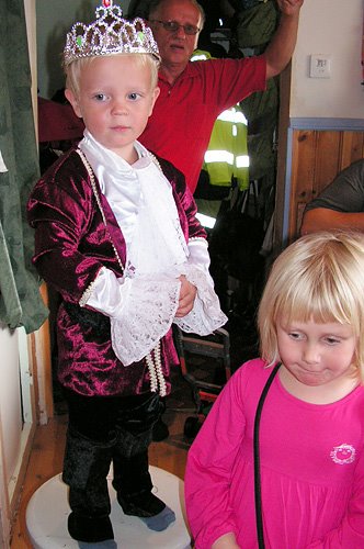 I kyrkan pågick ett dop för fullt så där ville vi inte traska rätt in för att kidnappa ett styck kyrkvaktmästare heller, men till slut var tack och lov dopet klart och kantorn kom och öppnade den förargliga mellandörren… vi hade nu 15 min på oss att hänga upp flaggor, plocka upp allt, fram med kakor och tallrikar, värma korv, möblera om osv…