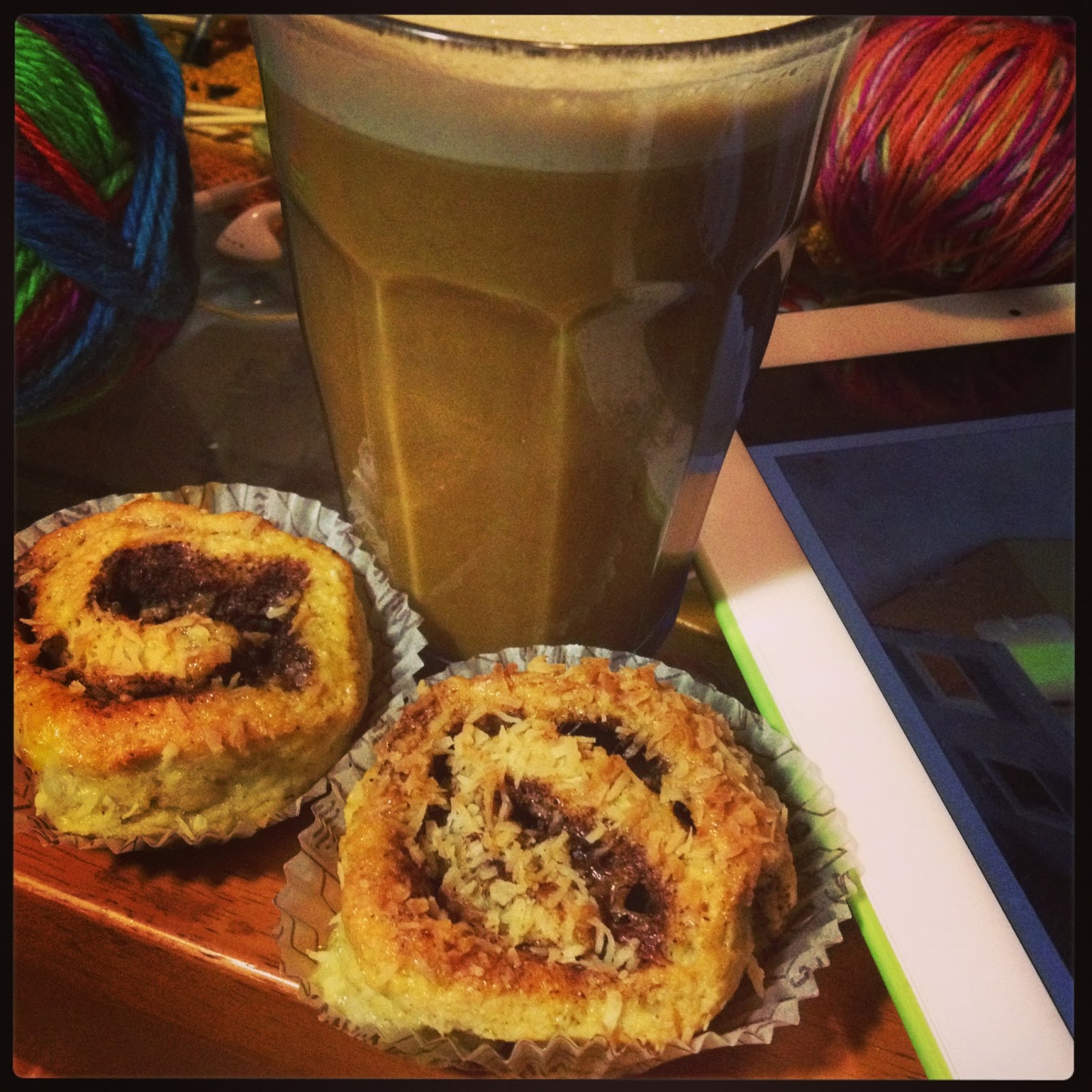 Under dagen dricker jag vatten, koffeinfritt kaffe (ska ju sova också) och te. På eftermiddagen brukar man bli lite hungrig och då kan jag ta och göra en Chailatte, starkt te, två äggulor, lite smör och lite grädde, ibland även lite stevia för att ”festa” till det. Det mixas och blir som en hel måltid ungefär.