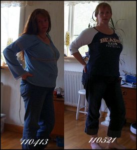 och jag började träna. Min inkomst blev minimal och jag hade knappt råd med mat, träna var det enda jag hade råd med… Det slutade med att jag lätt kunde jogga från sommarjobbet till Friskis& Svettis (fri sommarträning), träna där i 2 timmar, sedan träna Taido i 1-2 timmar för att avsluta med styrketräning ett tag innan jag joggade hem…. Resultatet blev 30 kg på 3 mån. Jag landade på 59 kg men såg anorektisk ut, jag hade storlek 36 i byxor och de satt löst.