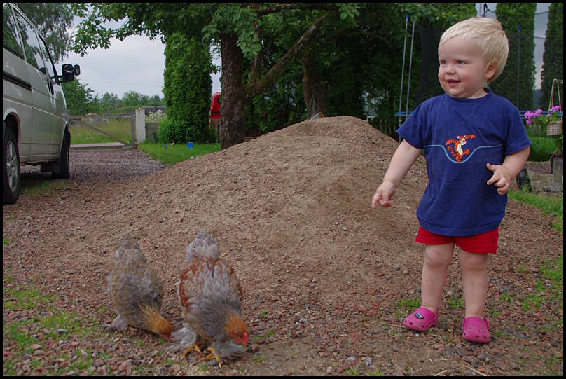 Måndag och tisdag blev det åtskilliga timmars arbetande men kanske inte så mycket gruskörning som jag hade tänkt, i och för sig ingen fara på taket då ryggen får återhämta sig långsamt. Onsdag och torsdag regnade det och ni får kalla mig vad ni vill, men arbeta i regnställ när jag skyfflar ohemula mängder singel och svettas som en gris? Redan innan regnstället? Nä, där passeras en av mina gränser…