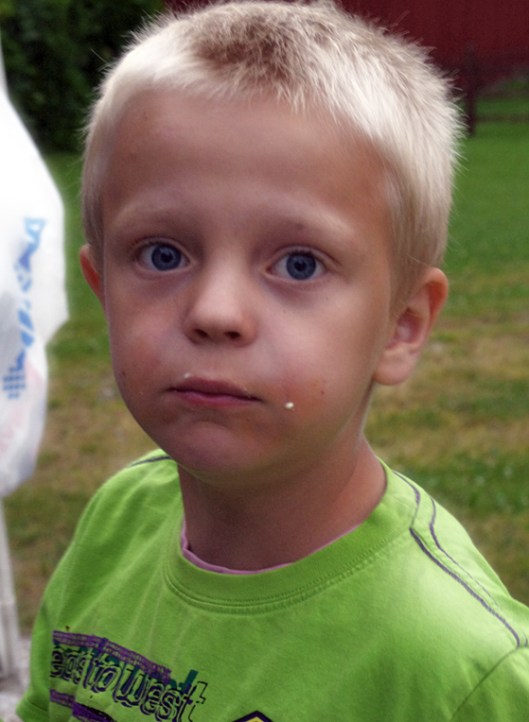 Då dök genast åskmolnet upp och trotssyndromet blommade ut i full skala. Jag bad honom gå ner och lägga sig på soffan en stund istället, och han stampade sig igenom huset.