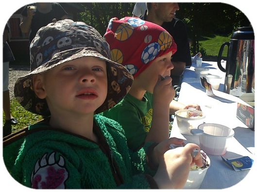 Efteråt var det fika och ungarna käkade glass, och lagom fulla med glass var det lek och bus i full kareta!