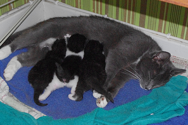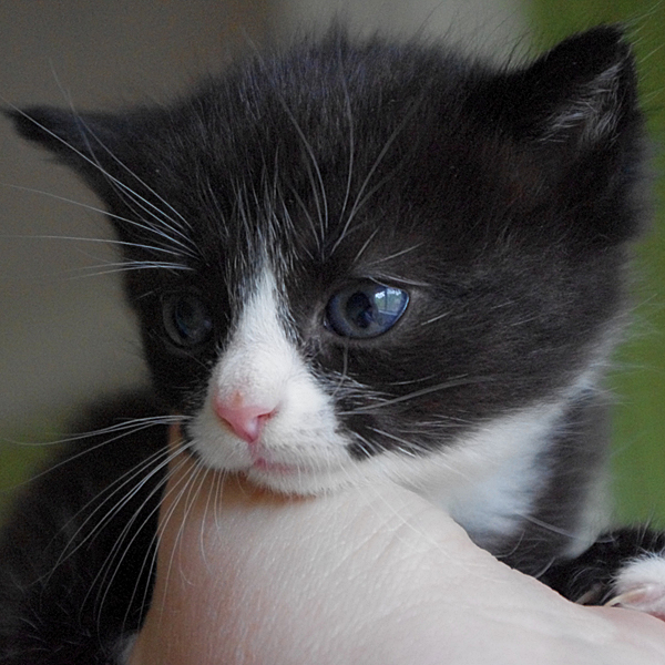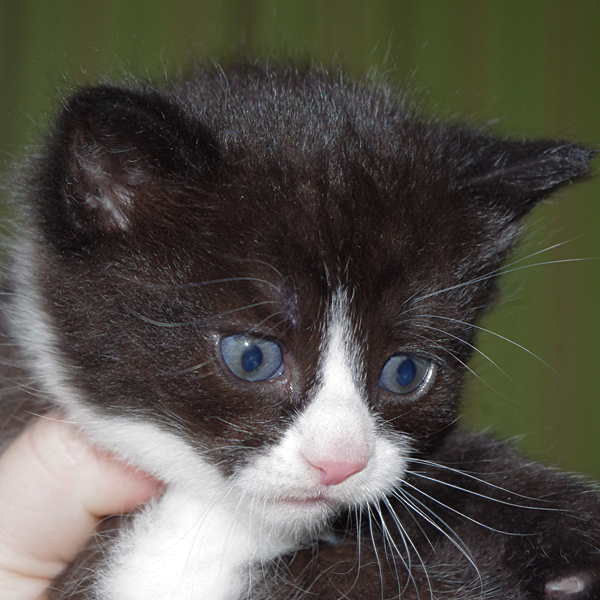 Lille Roger däremot väger ca 650 gr och är 1/3 av Smees storlek. Nu har vi nog kommit på varför han är liten. Förutom att han nog mest troligt är för tidigt född, han var ju liten i födseln också, så gillar han inte det foder vi hade till kattungarna. Inte torrfoder för den delen heller. Allt han fick i sig var de matrester som han hittade under barnens stolar vid måltiderna och så PimPim, och hennes mjölk är ju inte så kraftig längre…