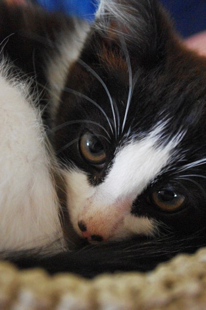 Nu har vi då bara lilla ”Spotify” kvar. En alldeles underbar och kelig, framför allt vacker, liten kattdam som också önskar sig en alldeles egen familj att bo hos. Någon som känner sig hugad?
