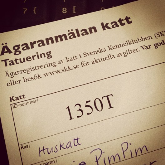 När vi hade PimPim inne på kastreringen så passade vi på att öronmärka henne. Visst kan man chippa, vilket vi kommer göra på Klubba antagligen, men hittar man en överkörd katt i diket t ex å ska det vara mycket till att man kör in den till polisen för att kolla chip.