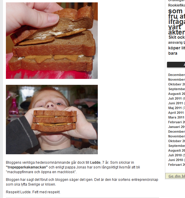 Ludde uppfann just pepparkaksmackan…. 2 skivor bröd med smör och ett par pepparkakor mellan… *mållös*