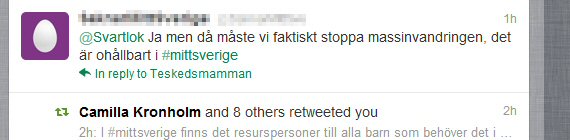 När de spelat färdigt släppte jag honom igen och i vanlig ordning sköter han sig jättebra så länge han inte blir tillsagd att göra nåt, jag kan styra honom till det jag vill, men låt mig göra på mitt sätt! Jag känner mina barn bäst och vet hur de funkar. Hade jag bara fått ett par minuter till på mig så hade jag uppnått det resultatet du hade velat, men eftersom det inte passar att någon inkräktar på din värld så såg du inte det. Det var uppvisning för barnen, ALLA barnen hade syskon, antingen på scenen eller i publiken, det var inte Göteborgs Symfoniker precis…..