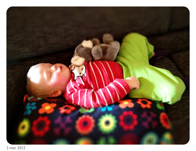 Det har varit en lång dag idag. Natten var lite stökig för Hannes pga broccoli tror jag. Han var gnällig och kunde inte ligga still inatt, varpå han krockade med väggen ett par gånger och förde ett jädra liv *stackars Lillan* Han lugnade ner sig efter någon timma och när jag fått av honom pyjamasen så han bara låg i blöjan. Lite lugna klappningar över ryggen gjorde sedan att han somnade… Men då hade jag varit vaken i ca 1½ timme *tråkigt*