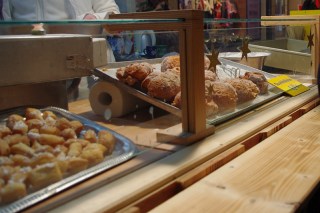 Via Wallers Plats och Hästgatan till Kränku. Här skulle jag kunna lägga åtskilliga tusenlappar! Framför allt hittade jag en tekanna i glas som jag på nåt sätt ska ha hem, antingen via Kränkus webbförsäljning eller Lillan och Bussgods *flörtar järnet* Här blev det en tekopp till mig och lite chokladkaffe… Just det Teskedspappan fick ett par påsar med brända mandlar på Adelsgatan…