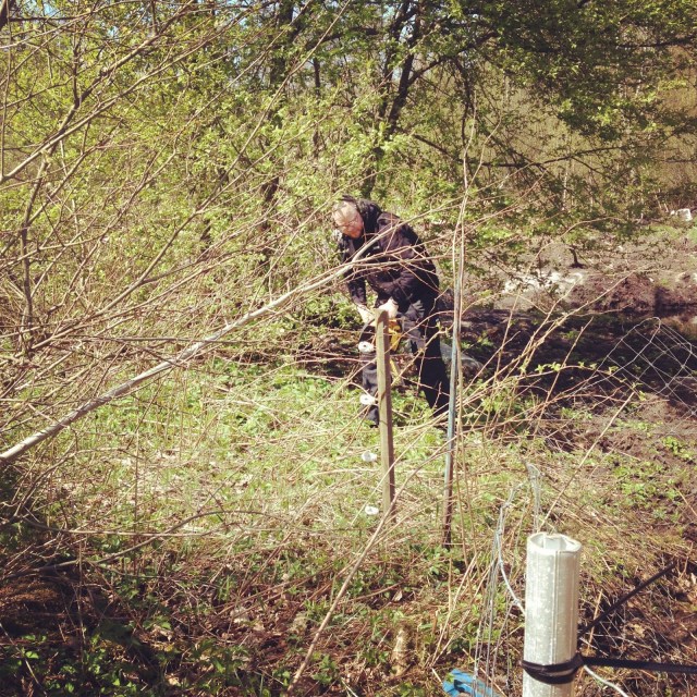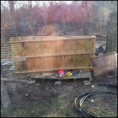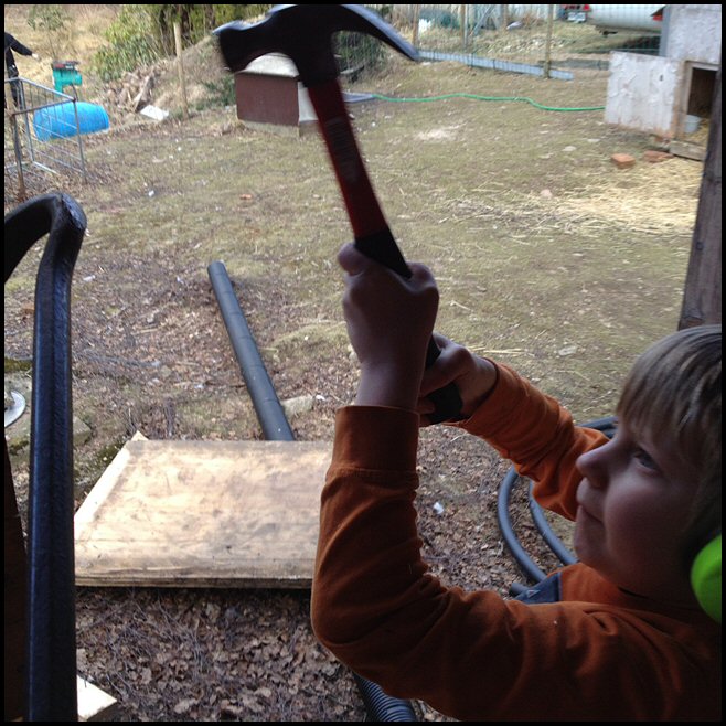 Lördagen började jag med att bygga färdigt min ”surbur”, en bur att ha i hönshuset till surhönor (som ruvar) och för kläckta kycklingar, när jag var klar med den gav vi oss på nästa sektion som vi hann klart, hälften var gjort! Ja, på den sidan grinden alltså….